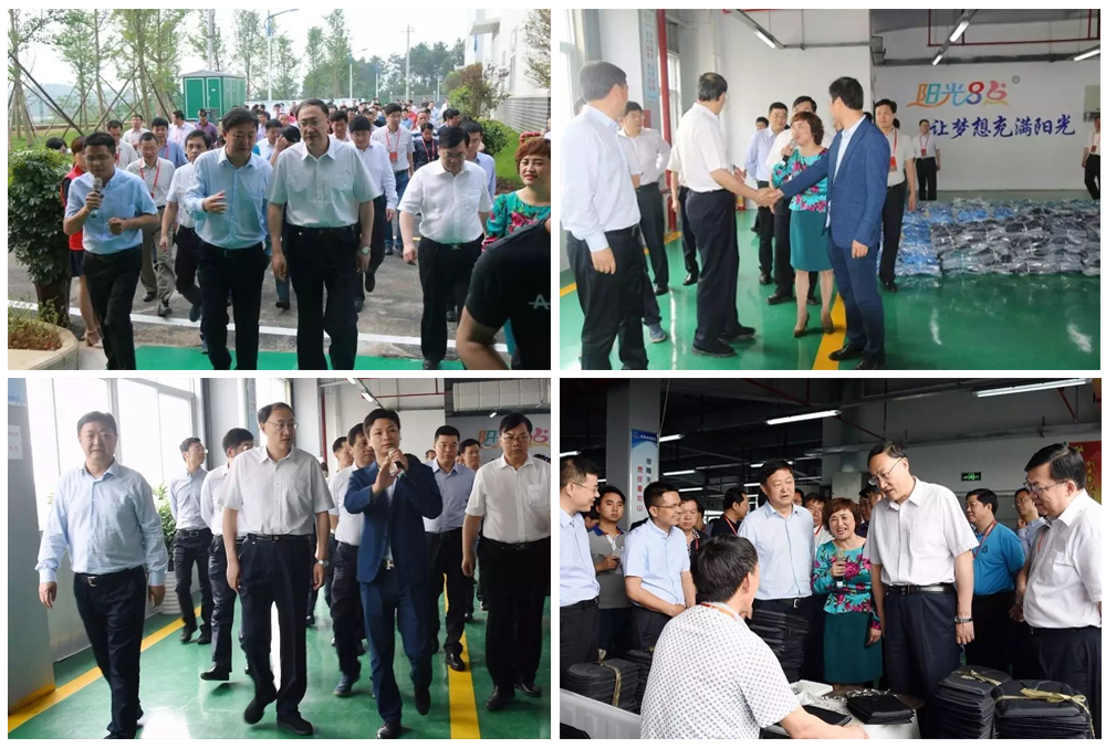 2017年5月11日上午9點(diǎn),省委常委、省委組織部部長李邑飛,省政協(xié)副主席黃家培,銅仁市市委常委、組織部長陳代軍,銅仁市市委常委、玉屏縣縣委書記王俊銘以及市政府副市長張明等領(lǐng)導(dǎo)率200多人的省觀摩團(tuán)來到貴州西部箱包產(chǎn)業(yè)園陽光8點(diǎn)工廠進(jìn)行考察。陽光8點(diǎn)董事長袁仕偉代表公司對考察團(tuán)的到來表示了熱烈歡迎。考察團(tuán)先后實(shí)地考察了貴州陽光8點(diǎn)工廠車間、陽光8點(diǎn)新建成展廳,以及員工的工作與生活環(huán)境。
