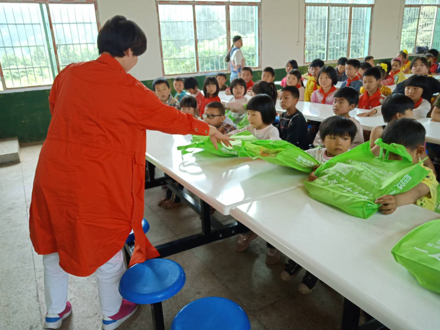 201861日:向貴州大龍第三幼兒園捐贈價值38450元的校服、書包和文具