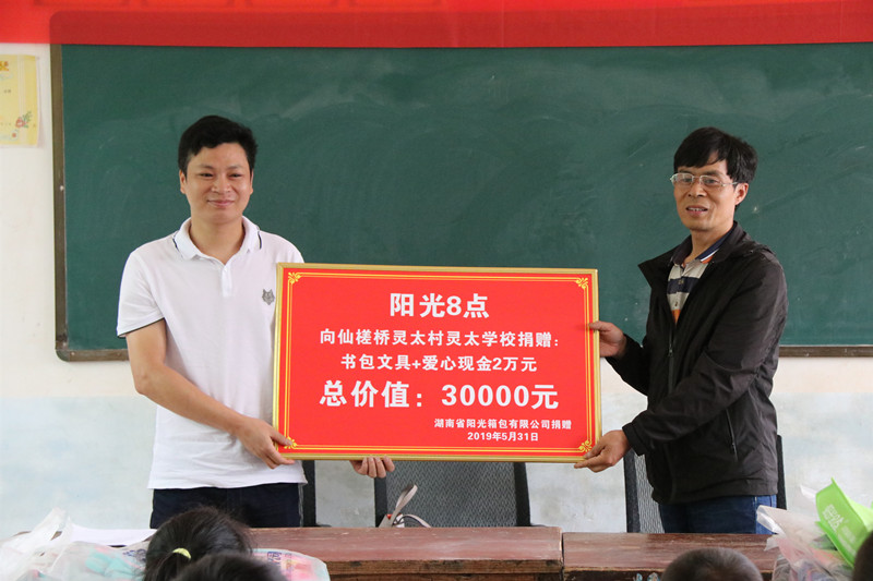 兒童節(jié)前夕,陽光箱包集團在邵東縣仙槎橋靈太村靈太學(xué)校、仙槎橋銀杏村金盆山學(xué)校舉行“小書包,大夢想,陽光8點與你共同成長”愛心捐贈活動,與兩校師生一起歡慶“六一”。