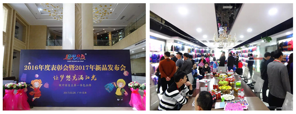 28日上午九點,“陽光8點”在廣州市花都區(qū)龍頭市場17棟召開了2017年大學(xué)訊新品發(fā)布會。在新品發(fā)布會上,向來自全國各地的客戶展示了“陽光8點”2017年最新款式的書包。來自五湖四海的代理商朋友前來參加“陽光8點”新品發(fā)布會。